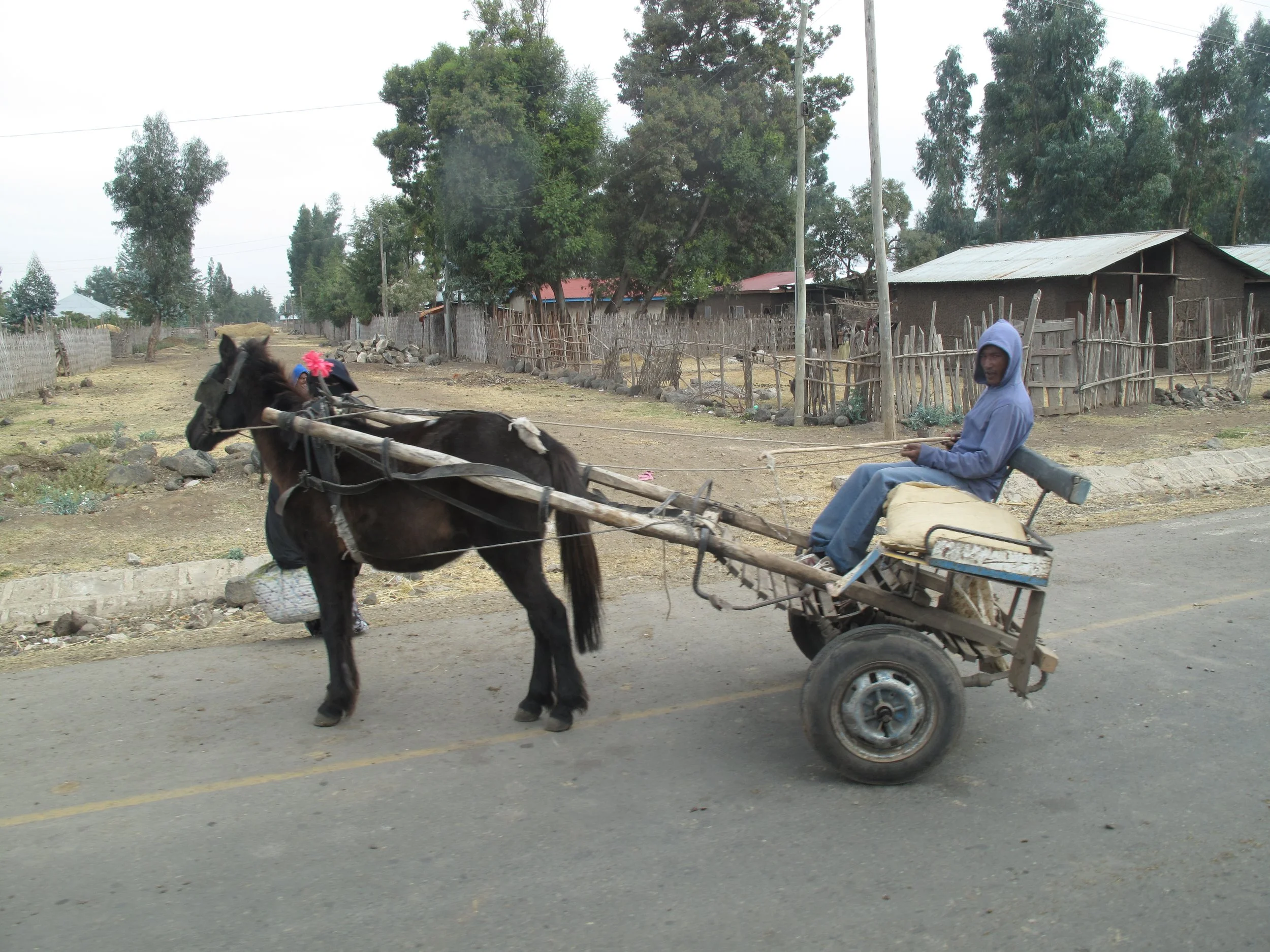 Rural Ethiopians depend on roads for nearly every economic and social activity. Paved or unpaved, they are arteries for carrying water, delivering the harvest to market, and transporting animals. Most of the country’s roads are bumpy, pothole filled affairs. Traveling on “good roads” it may be possible to reach speeds of up to 40 kilometers per hour. Good or bad, unpaved roads may become muddy and impassable during periods of heavy rain.