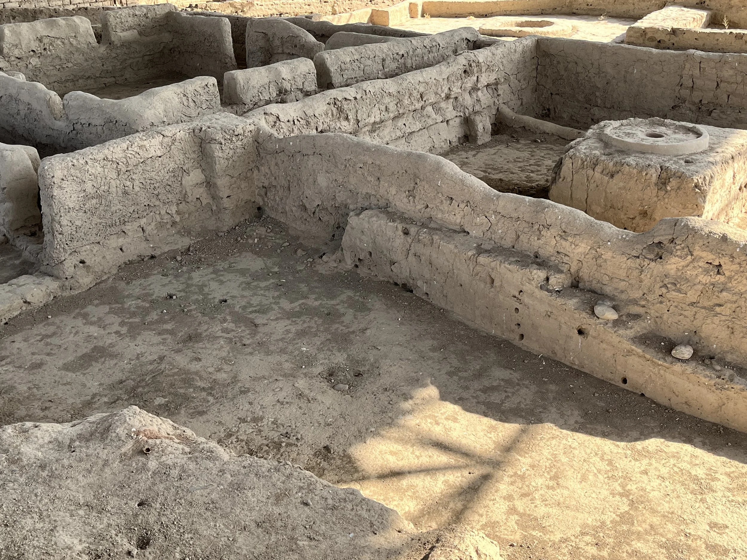 On the outskirts of the modern city are the ruins of Old Panjakent (aka Panchekanth). We parked adjacent to severely eroded earthen walls. Old Panjakent was established in the 6th century along the Zeravshan River. In 1946, Russian archaeologist Boris Marshak began excavations of the site and over a fifty-year period, his team uncovered two Zoroastrian temples, a citadel, a large palace, a necropolis, and many streets and passageways. The settlement was among the easternmost cities of the Sogdiana Empire, an early Iranian civilization. Besieged by Arab Muslims in 722, Panjakent was abandoned sometime in the late 8th century.