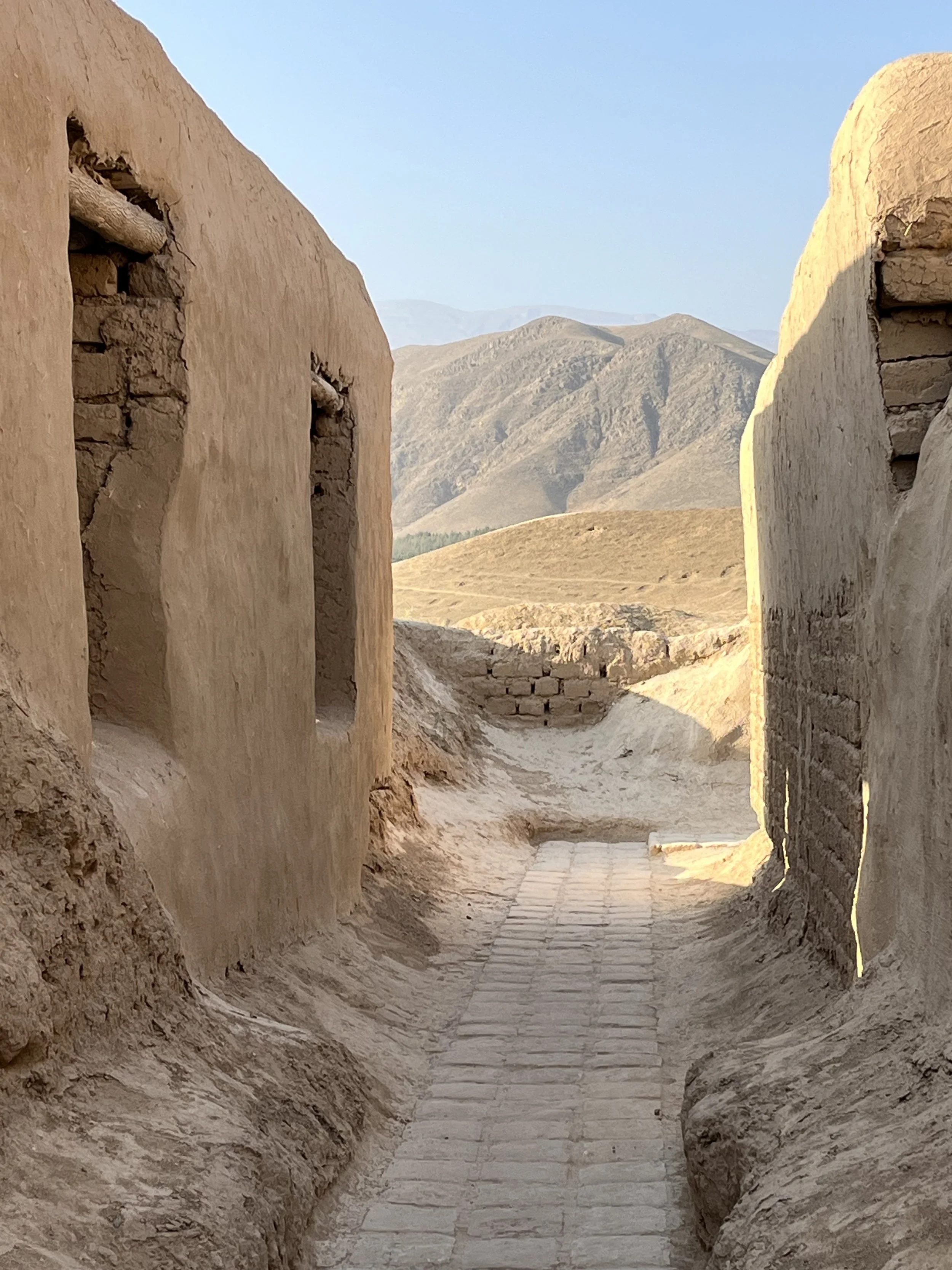 Near the northeast corner are two large courtyards with atriums and covered walkways, an area believed to be part of Nisa’s royal palace. The tour path crossed over narrow passageways that were likely used by servants to attend to the needs of palace residents. From a high point it’s possible to see the location of New Nisa on the far side of a modern housing subdivision. With houses and streets lined with shops, New Nisa had a population that was larger than the old city. In 2007 Nisa became a UNESCO World Heritage Site. Today, work is ongoing to stabilize and excavate the city.