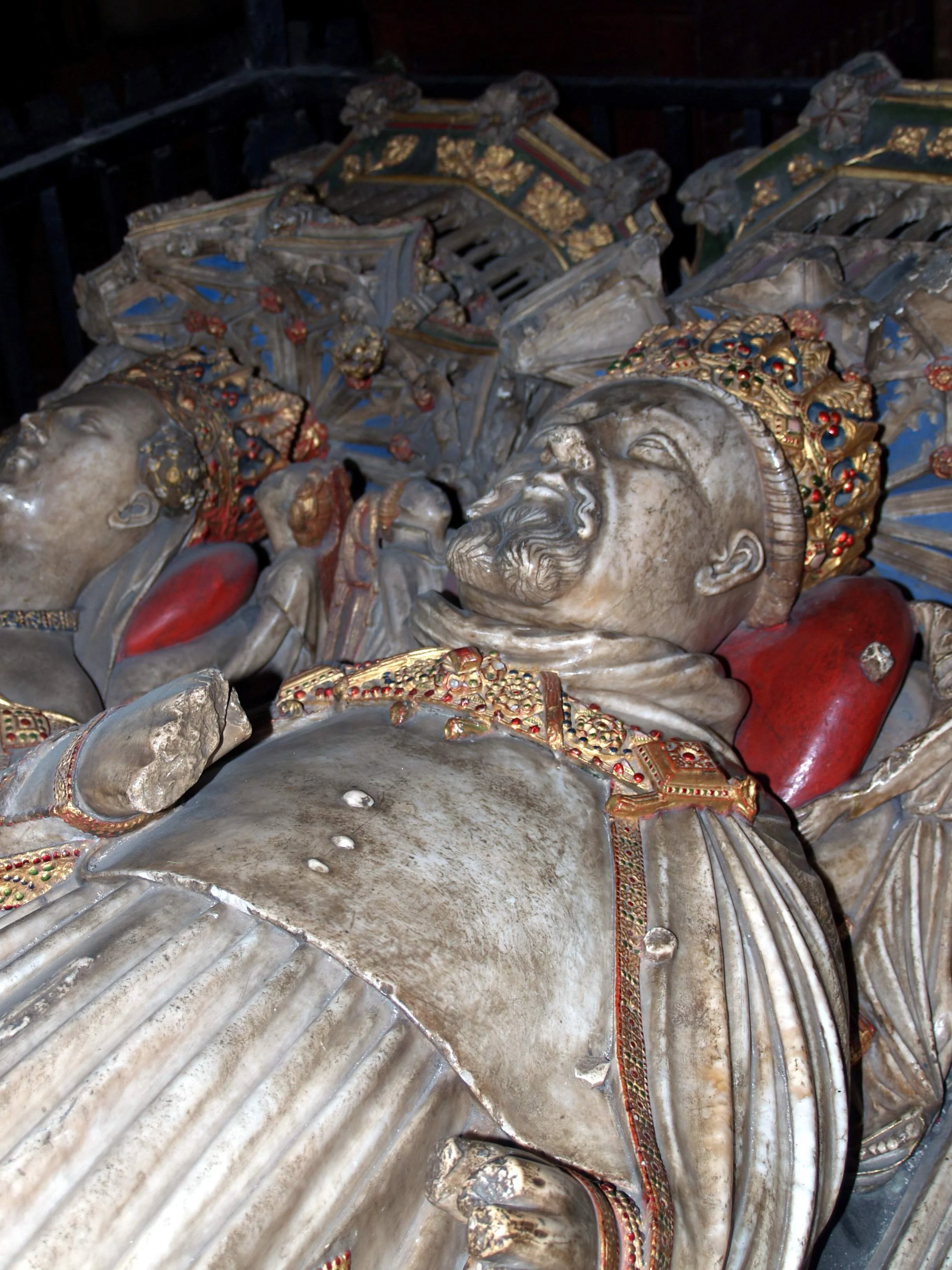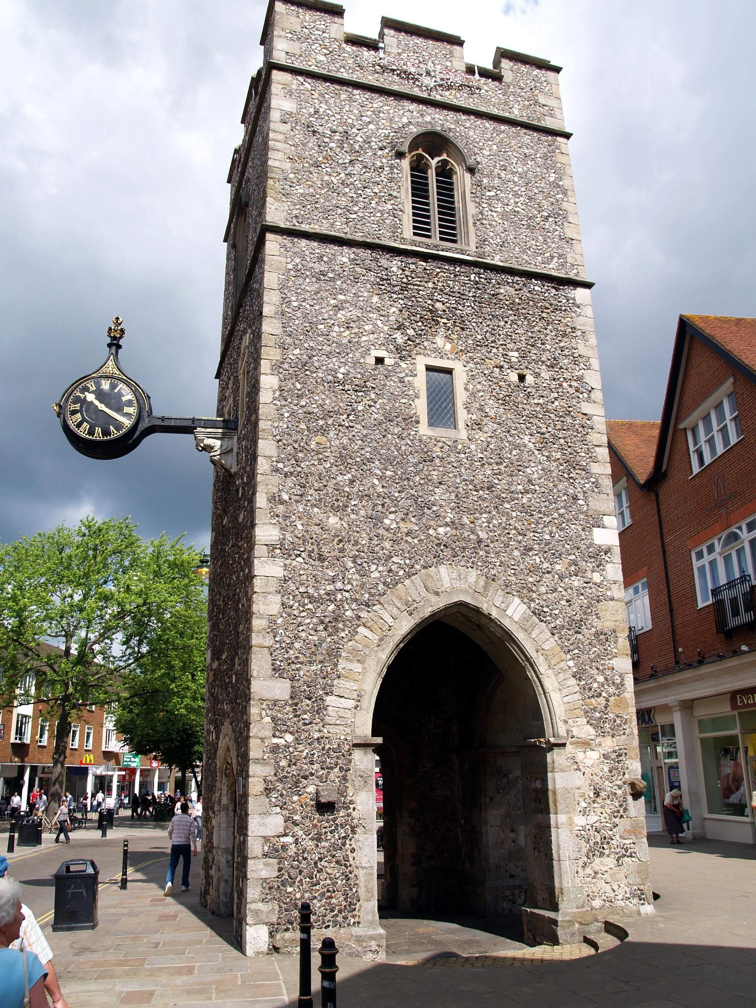 Another stop was the Roman Museum. In 1868, workmen digging trenches for a drainage system discovered a mosaic floor 2.4 meters below street level. Other ancient infrastructure was uncovered during WWII after German bombs exposed Roman-era underfloor heating systems, tile-covered corridors, and wall paintings. Today, the museum provides in situ opportunities to see Roman artwork and innovations. We passed St. George’s Tower that is all that remains of the medieval Church of St. George the Martyr. Located on High Street and featuring a crenellated parapet and corbelled clock, it is the church where playwright Christopher Marlowe was baptized in 1564. Added in either the 14th or 15th century, the clock tower survived German bombs.