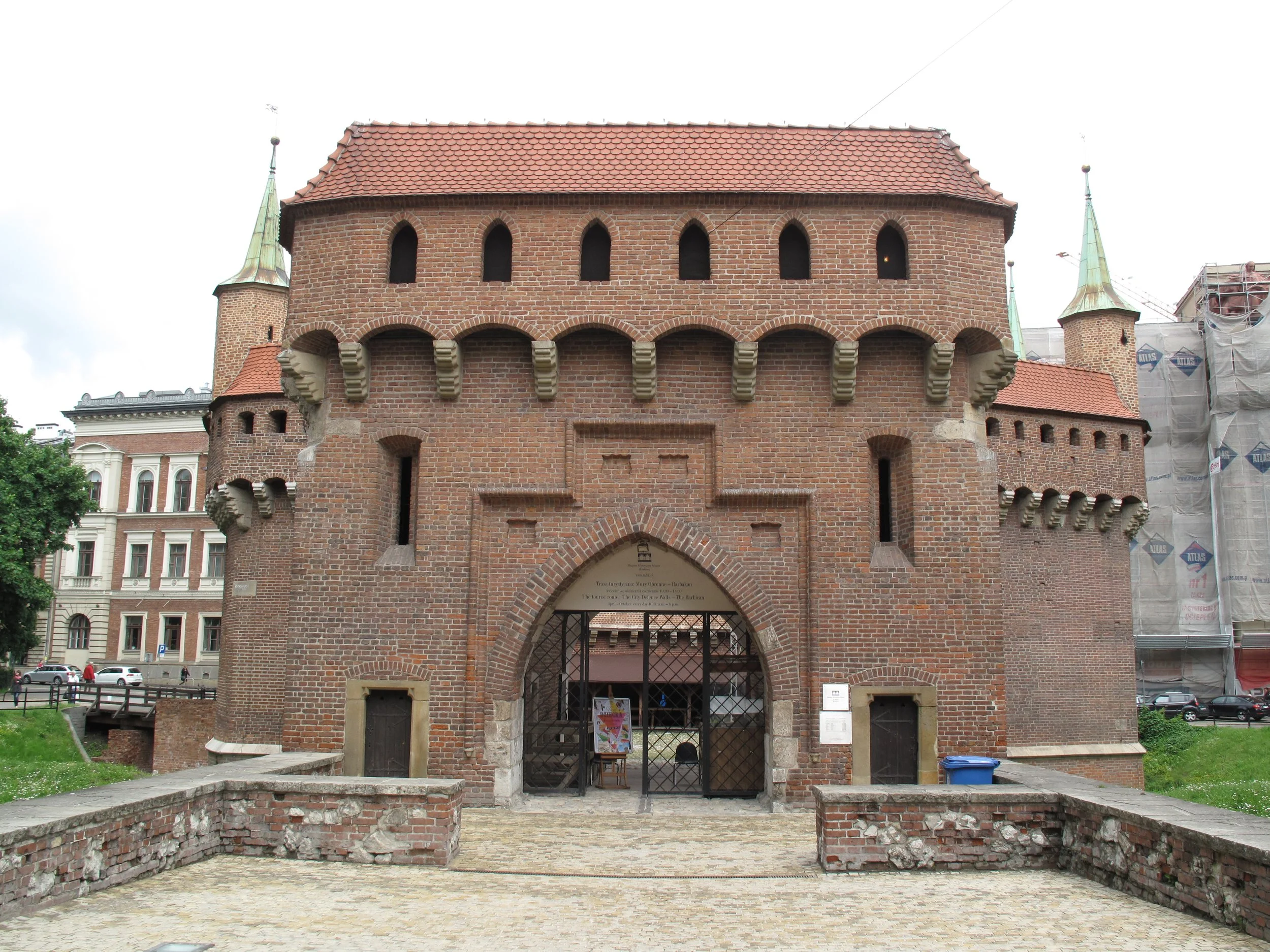 The oldest part of Krakow is best explored on foot. During much of its history the city was surrounded by a ten-meter-high wall with additional protection provided by a six to seven-meter-high inner wall, fortified gates, a moat, and several watchtowers. We walked past St. Florian’s Gate, Old Krakow’s main entry and the last surviving of eight original gates. Built in the Gothic style during the 14th century, the 33.5-meter-high gate featured a drawbridge. Beginning in the 19th century, most of the city’s walls were torn down to make room for streets and buildings.