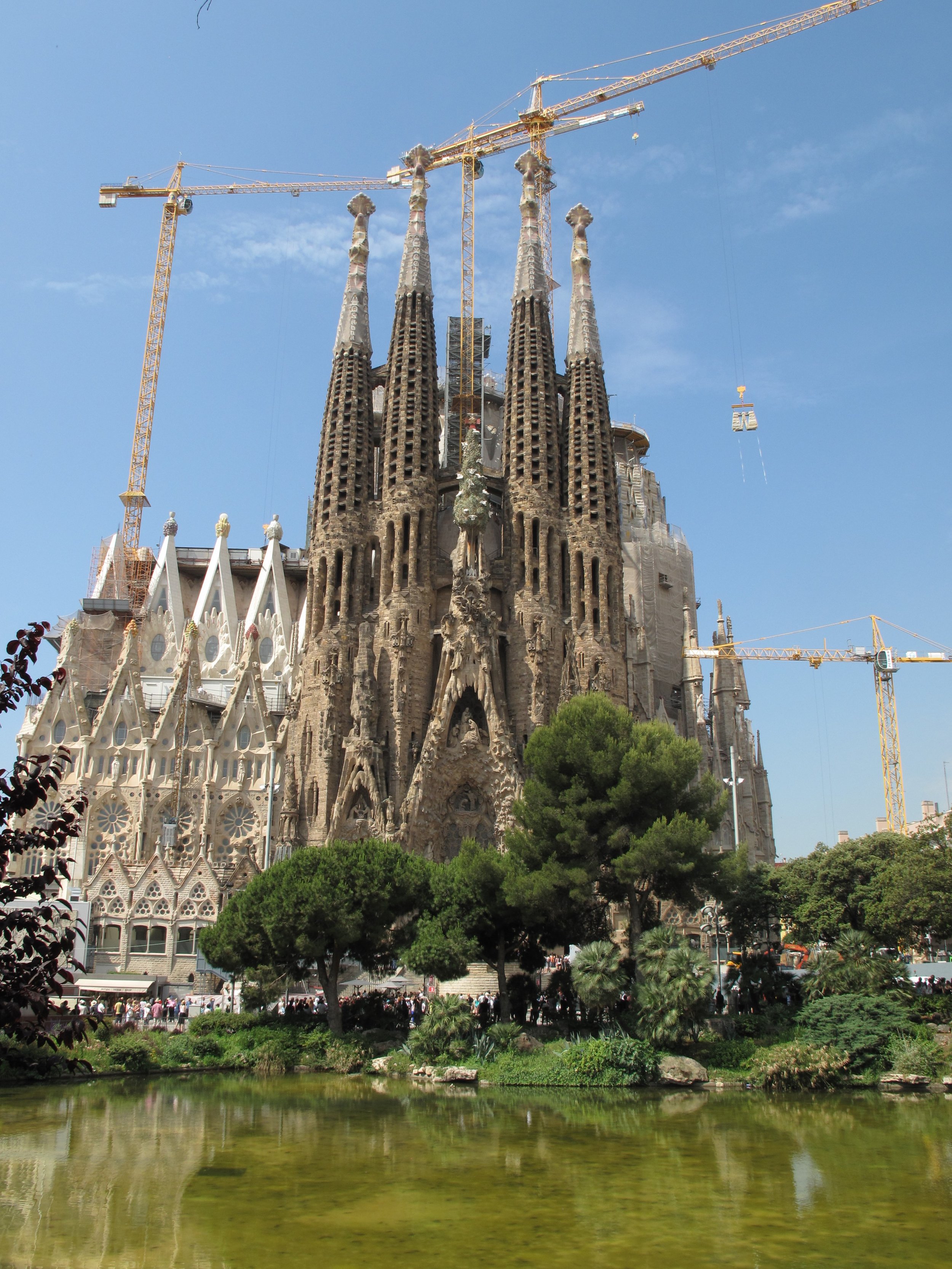 One of the highlights of my Barcelona visit was Sagrada Familia, a still unfinished Catholic church that has been supported through donations. Work began on the church in 1882 under the architect Francisco de Paula del Villar and later, Antoni Gaudí. Gaudí’s designs blended Gothic and Art Nouveau styles. The building has flying buttresses and many helicoidal piers and hyperboloid vaults. At its top is a Latin cross surrounded on three sides by porticos. There are also eighteen spindle-shaped towers that represent the twelve apostles, the Virgin Mary, and Jesus. When asked about slow progress on the structure Gaudí replied, “My client is not in a hurry.” Following his death in 1926, Gaudí was buried in the church. Work was discontinued during the Spanish Civil War (1936-39). A UNESCO World Heritage Site since 1984, the building’s final decorative elements, including the Glory Staircase, are projected to be finished by 2035.