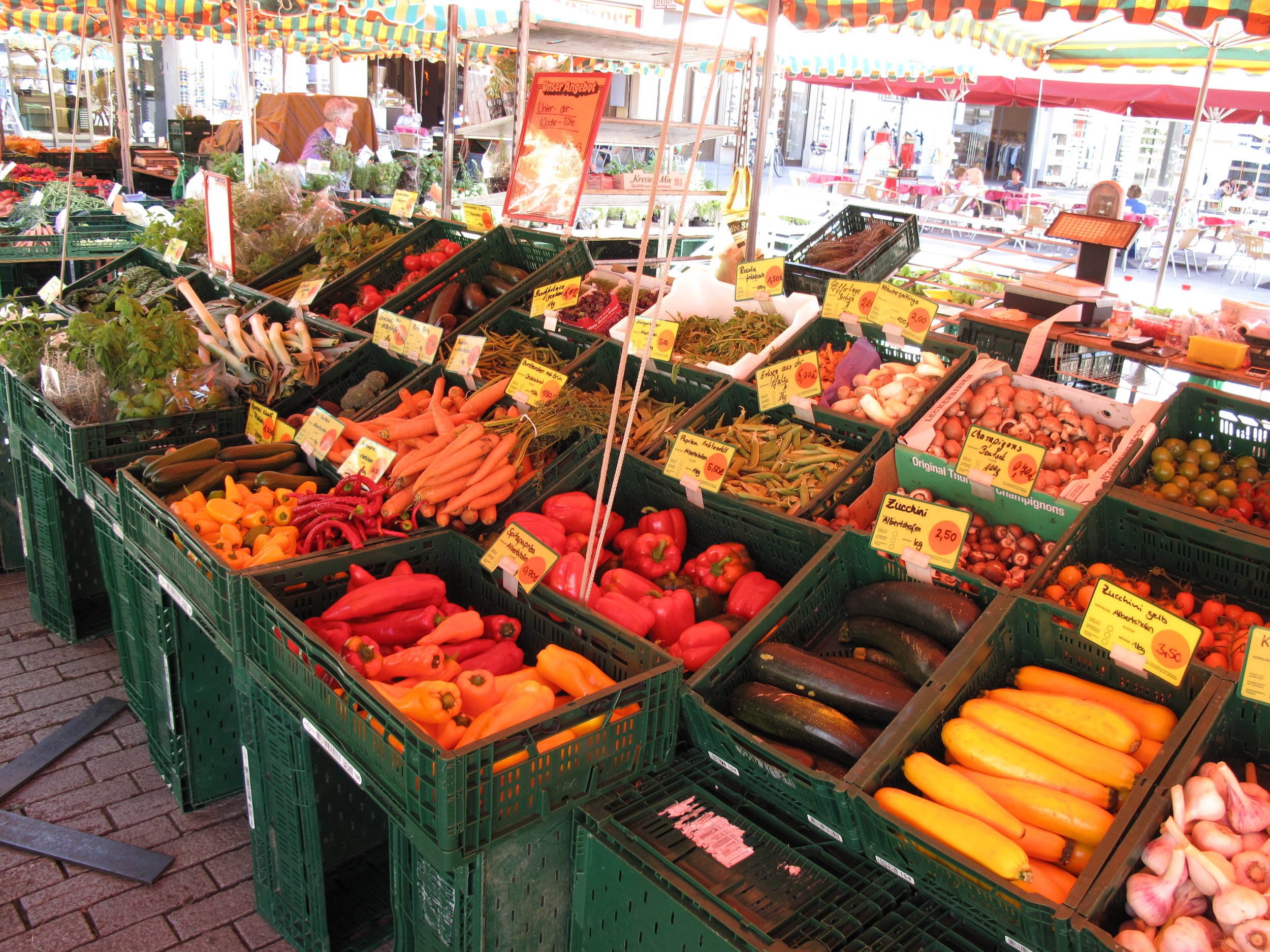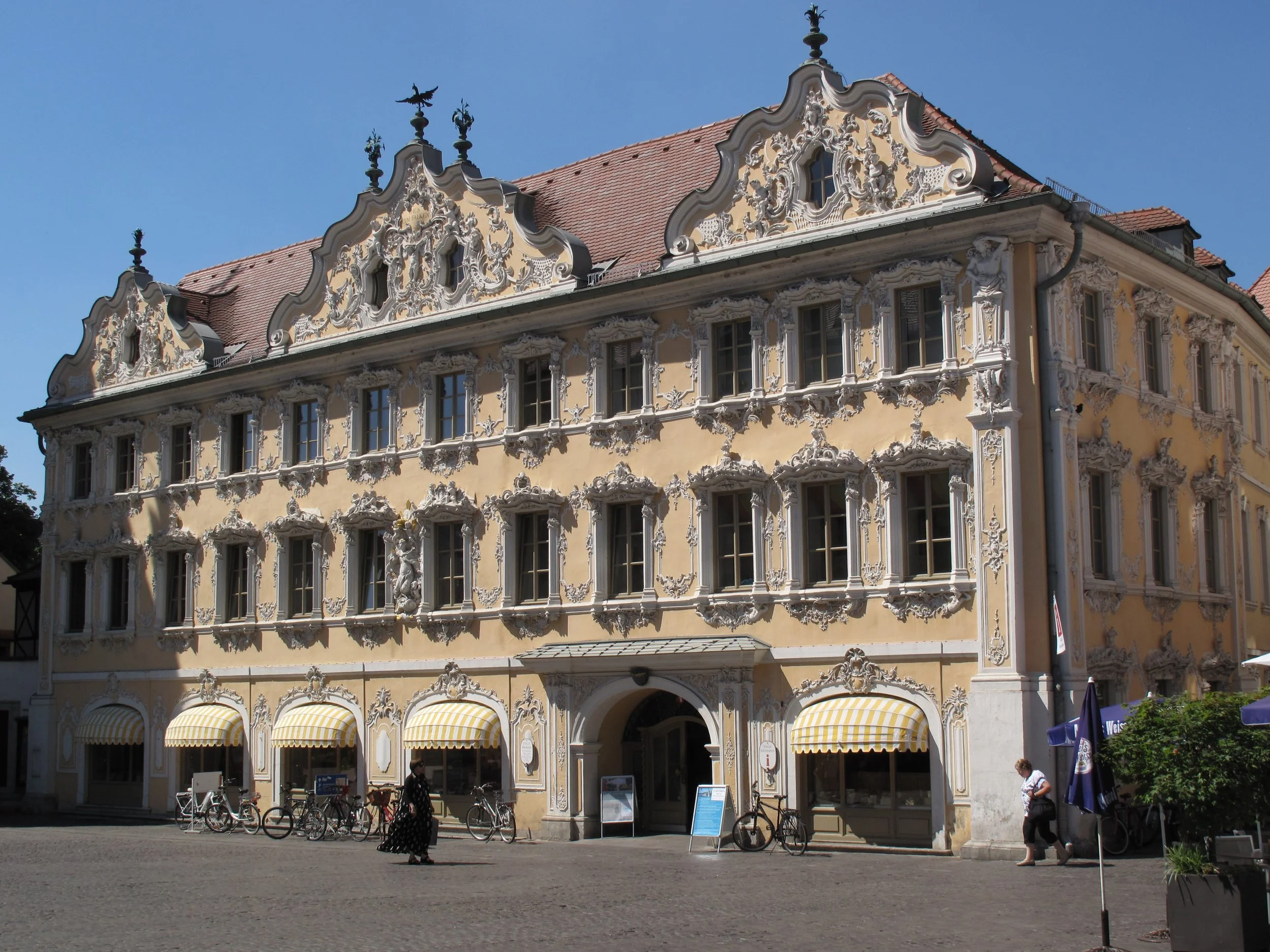 With bright colors, mascarons (ornaments featuring a face), whimsical curves, and other asymmetrical forms, Falkenhaus (the House of Falcon) is an example of Rococo façade architecture. The building is positioned on Market Square and served as the residence of the cathedral’s priest. After the 14th century, it was used as a venue for dances and concerts. Today it serves as a tourist information center and as the city’s library. In the nearby market, vendors sell fresh fruit, vegetables, and flowers. It’s also possible to purchase sausages, bratwurst, sourdough or rye bread, various cheeses, and yogurt.