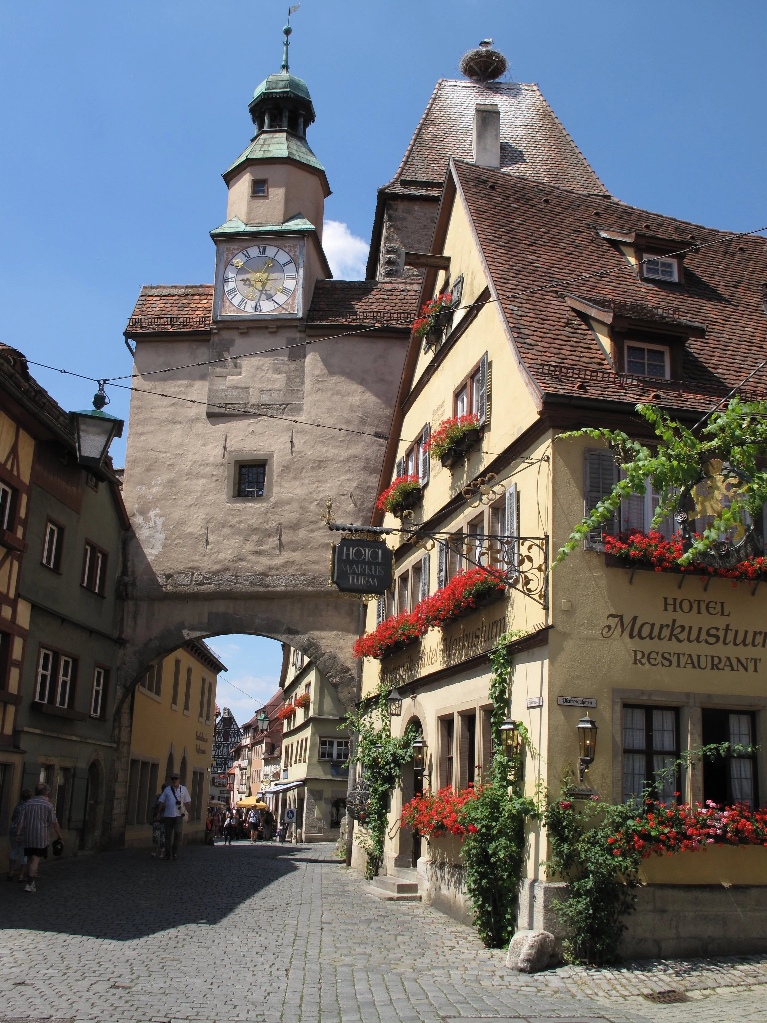 Our walking tour took us down cobblestone streets flanked by timbered houses with red roofs. Near the Romantik Hotel is Gallows Gate, a massive stone archway with towering spires, and Plönlein Street with its fairytale-like houses. The street served as a model for Walt Disney animators who created the movies Pinocchio (1940) and Beauty and the Beast (1991).