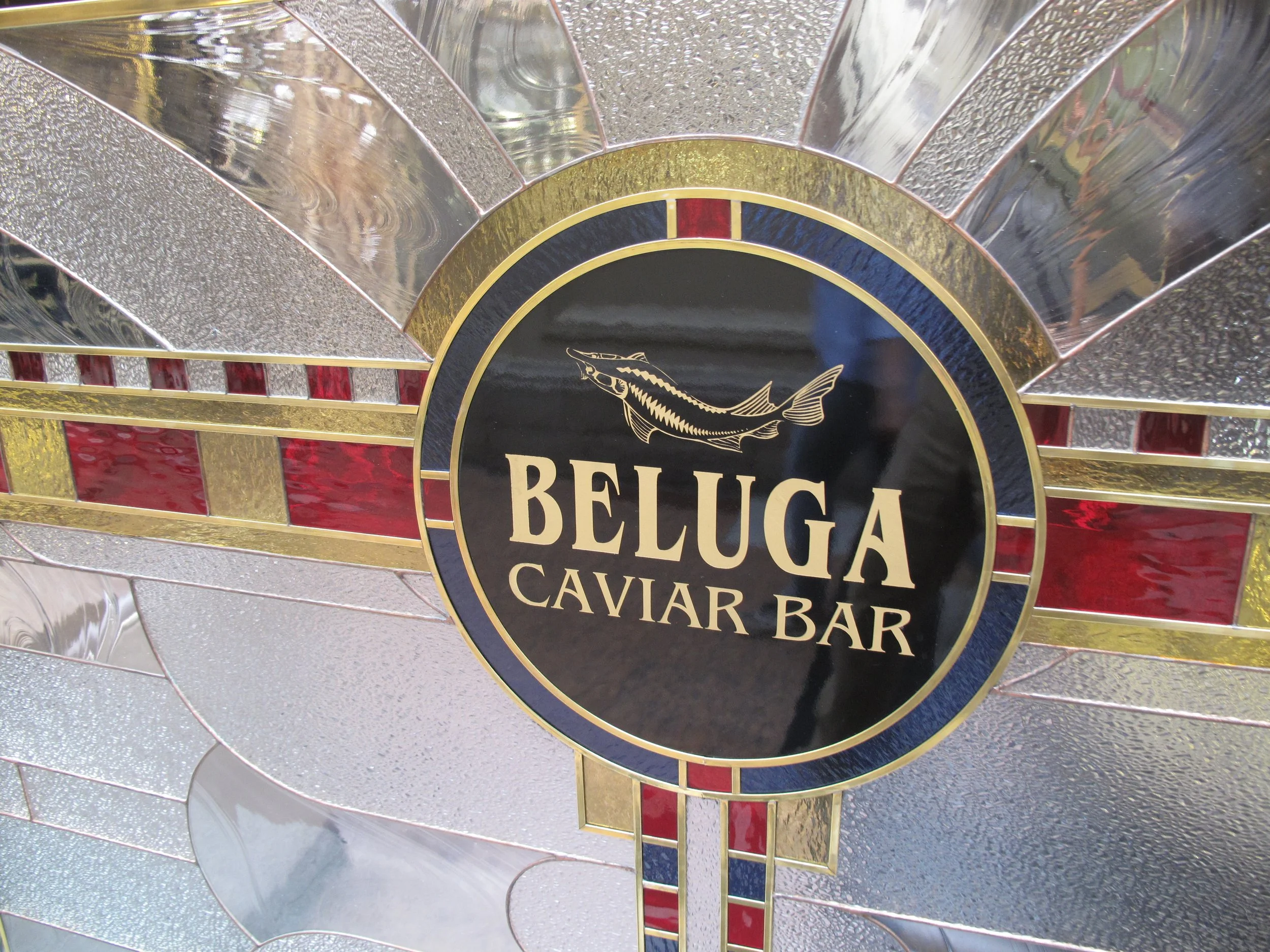 Passing stores selling ice cream, vodka, and designer clothing, we entered Gastronome No. 1, GUM’s only supermarket. From marble counters shoppers can purchase Kamchatka crab, Antonovka apples, Tambov ham, and Sri Lankan tea. At a shop called Naslediye, it’s possible to buy souvenirs such as Matryoshkas nesting dolls and Fabergé eggs. A kiosk in the main corridor offers tickets to see opera or ballet performances at the Bolshoi Theatre. Shoppers can also stop at a specialty bar for a sample of caviar served with a shot of vodka. Located on the 3rd floor, GUM’s cinema has three sections: a large hall with seventy seats, a children’s hall, and a VIP lounge.