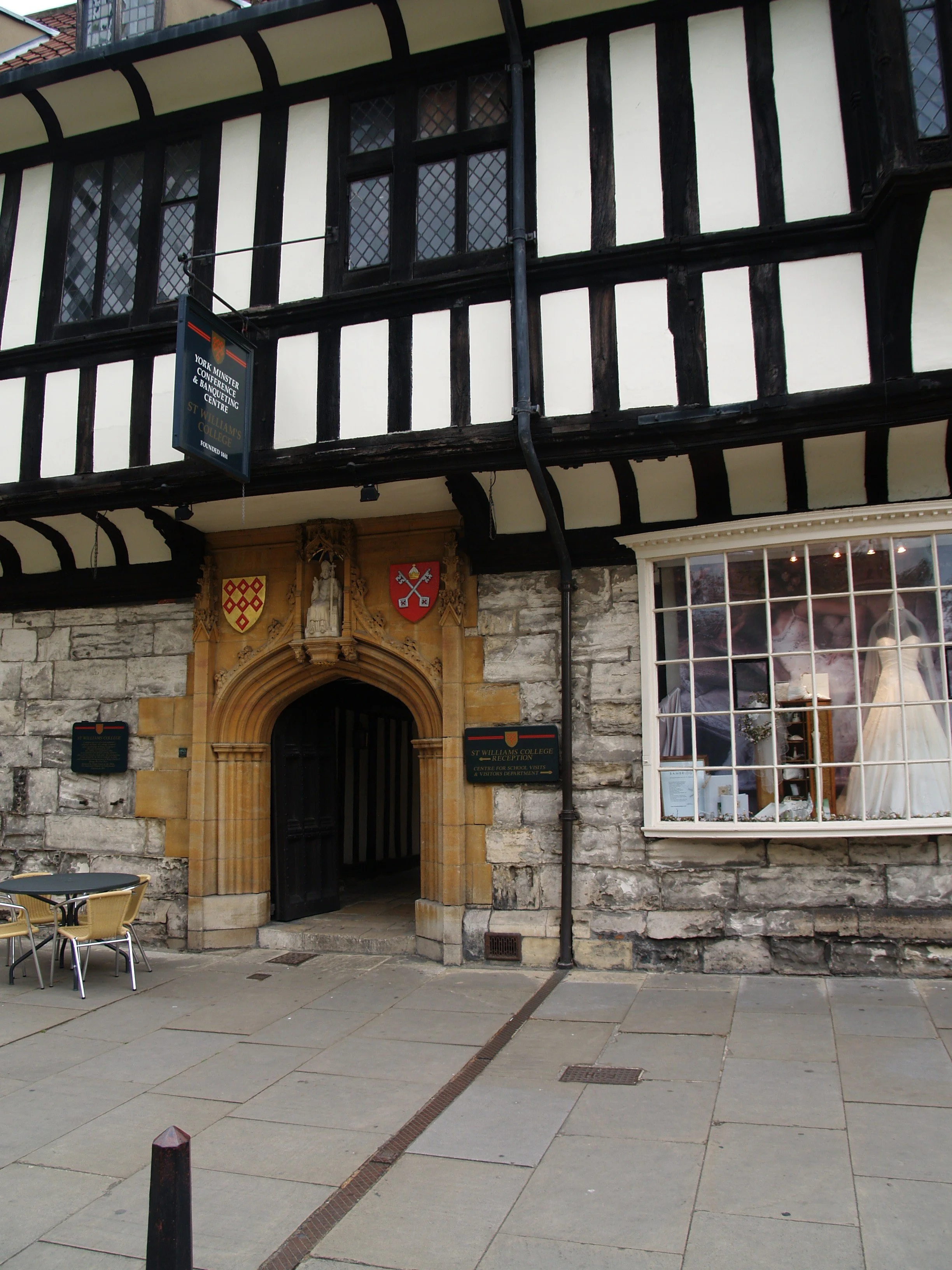 We passed St. Williams College, a medieval dormitory for priests who worked at York Minster. The principal duty of “chanty priests,” also known as “fellows,” was to pray for the souls of deceased benefactors. Fellows also taught within the local community. The building was named in honor of William FitzHerbert, a catholic priest born in the late 11th century who later served as Archbishop of York. Founded by George Neville, Earl of Warwick, the three-story building is made of magnesian limestone. The exterior of its timber-framed first floor has black wood with white plaster. During the English Civil War, the building housed the Royal Printing Press. Later, it was used for slum dwellings until it was sold to the city council in the late 19th century. Today, the Tudor-style building is used to host medieval dinners and conferences.