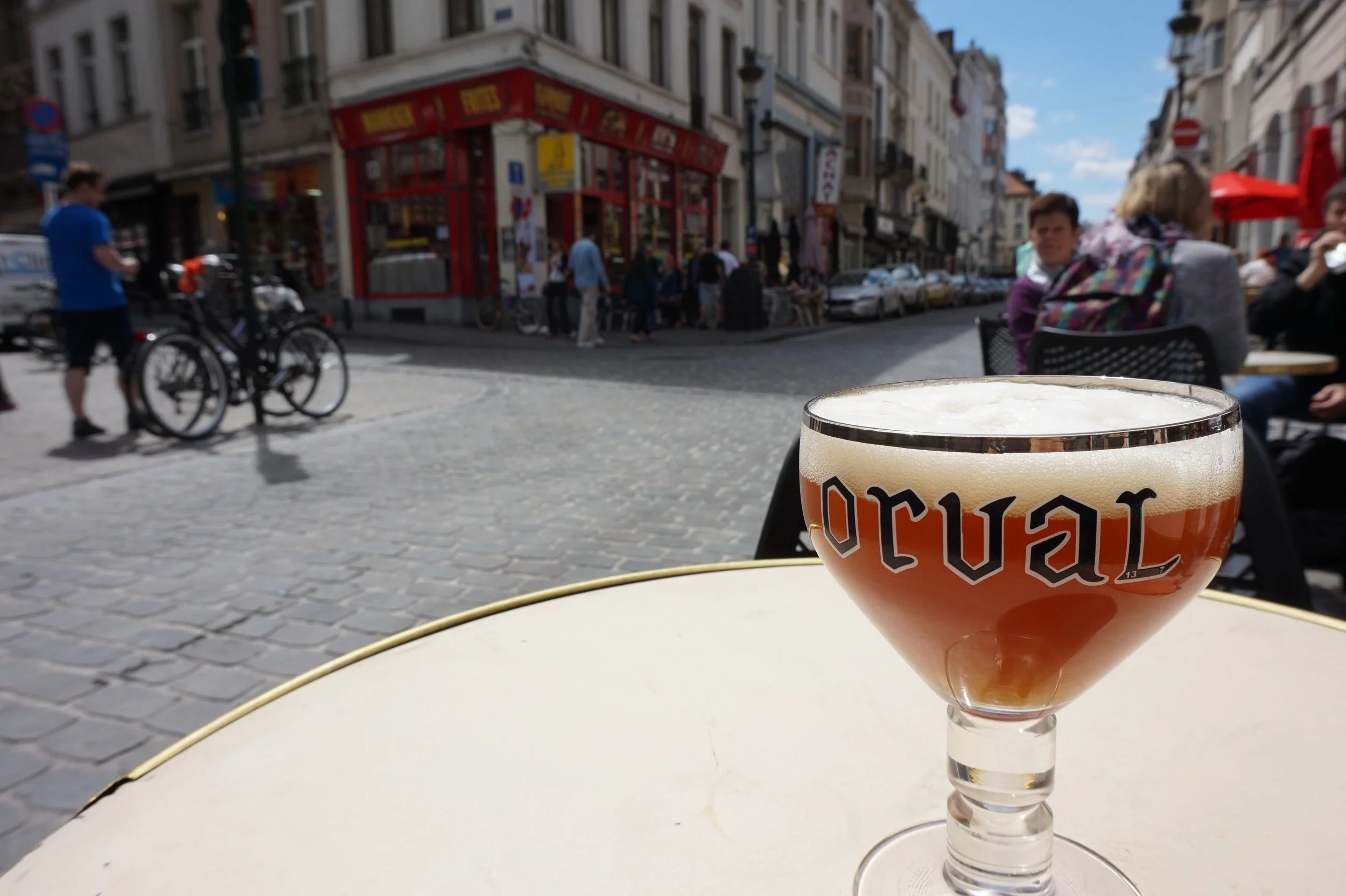 Waiting on my companions, I located a store selling a brand of chocolate bar I had been searching for. Belgium had an early start in producing chocolate. Beginning in the 1880s, the country imported cacao from its colonies in Africa including the Congo Free State (later known as the Belgian Congo and now the Democratic Republic of the Congo). Successful in my quest to find chocolate, I paused at an outdoor restaurant where I ordered an Orval beer. Produced since Roman times, Belgium beers range from Flemish red ales to strong ales and wheat beers. There are more than 400 breweries in Belgium that together produce 1,600 unique beers. Orval is a Trappist style beer (top fermented and brewed under the supervision of Cistercian monks) served in a unique glass. With an alcohol content of 6.2%, it is light in color and slightly cloudy. My first sip revealed its fruity and slightly bitter taste.