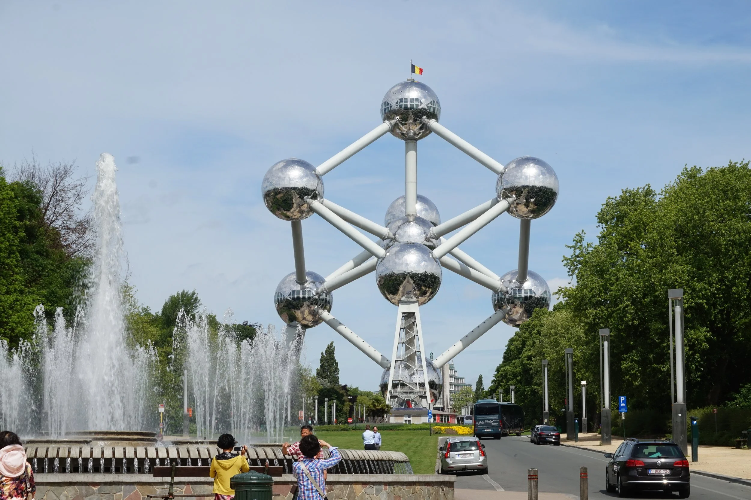 Another stop was Galeries Royales Saint-Hubert (Royal Saint-Hubert Galleries) a shopping center with three parts: the King’s Gallery, Queen’s Gallery, and Prince’s Gallery. Designed by architect Jean-Pierre Cluysenaar and featuring arched shopfronts, the building was completed in 1897. Since the building combines a shopping center with a public walkway, it is sometimes referred to as the “umbrella of Brussels.” With apartments occupying upper floors, the galleries feature clothing stores, boutiques selling food and jewelry, and several bars and restaurants. The complex also serves as a venue for festivals and parties. Forming a contrast to older buildings is the Atomium (with its name coming from atom and aluminum), a futuristic looking building constructed for the 1958 World’s Fair. Located on the Heysel/Heizel Plateau, the 102-meter-tall structure features 18-meter-wide stainless-steel spheres that are accessible using escalators or a lift. It is designed to represent an iron crystal.