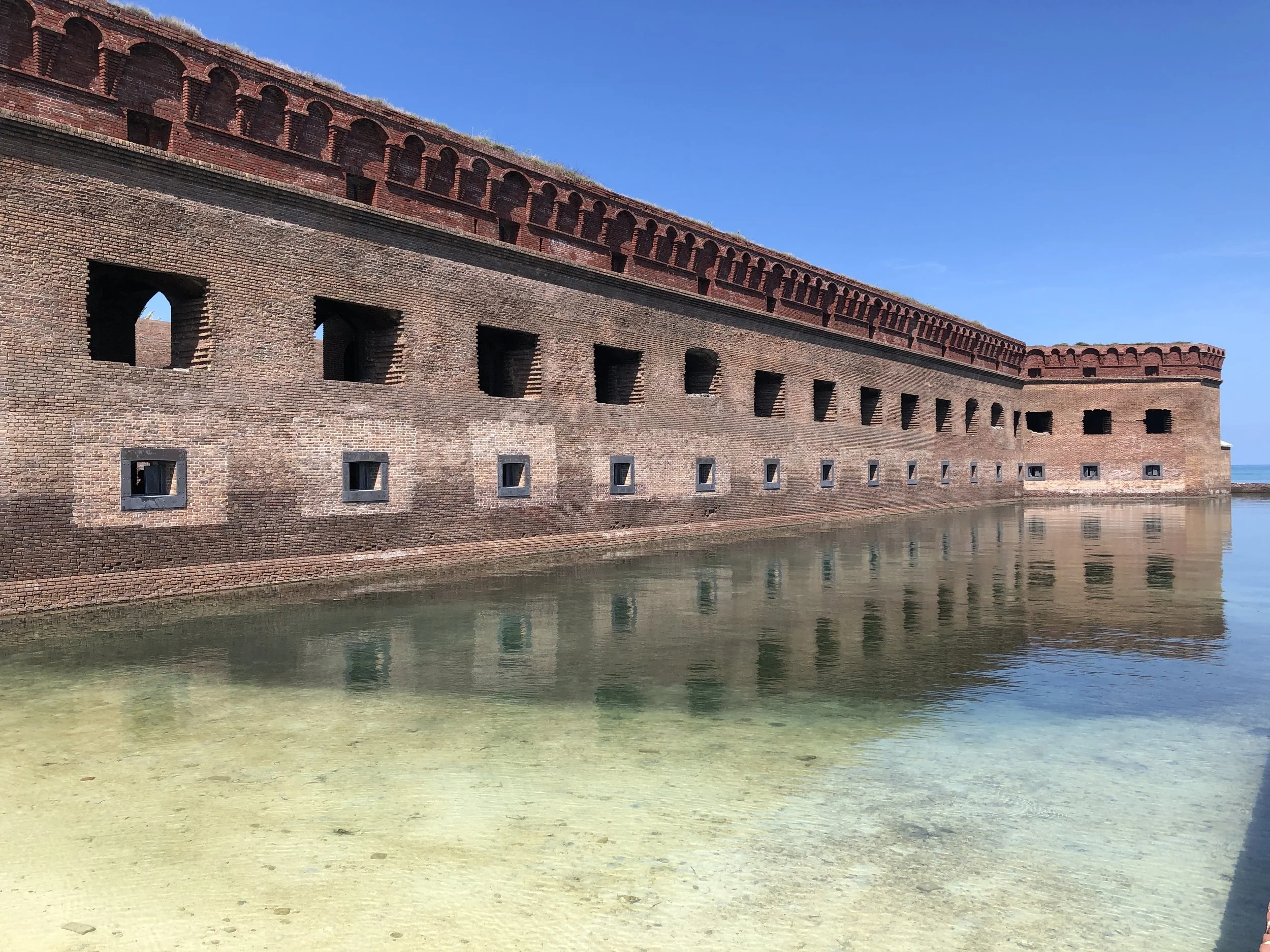 On our second day we took a two-and-a-half-hour ferry to Fort Jefferson, now part of Dry Tortugas National Park. The national park protects shipwrecks, the pre-Civil War fort, and several islands of the Dry Tortugas. The park and fort are accessible only by boat or floatplane. Constructed between 1846 and 1875 and made from 16 million bricks, Fort Jefferson is the largest all-masonry fortification in the U.S. It was never completed out of fear that additional weight might cause its foundation to subside. The fort features 2,000 arches and a lighthouse (completed in 1825) used to warn vessels about dangerous reefs. Following the Civil War, Dr. Samuel A. Mudd was imprisoned there. Mudd had been convicted of helping John Wilkes Booth following the assassination of U.S. President Abraham Lincoln in 1865. Fort Jefferson was designated a national monument by President Franklin Roosevelt in 1935 and in 1992 the monument and surrounding islands became a national park. Today, the park’s annual visitation is about 63,000. Major activities within the park include snorkeling, scuba diving, kayaking, fishing, and birdwatching.