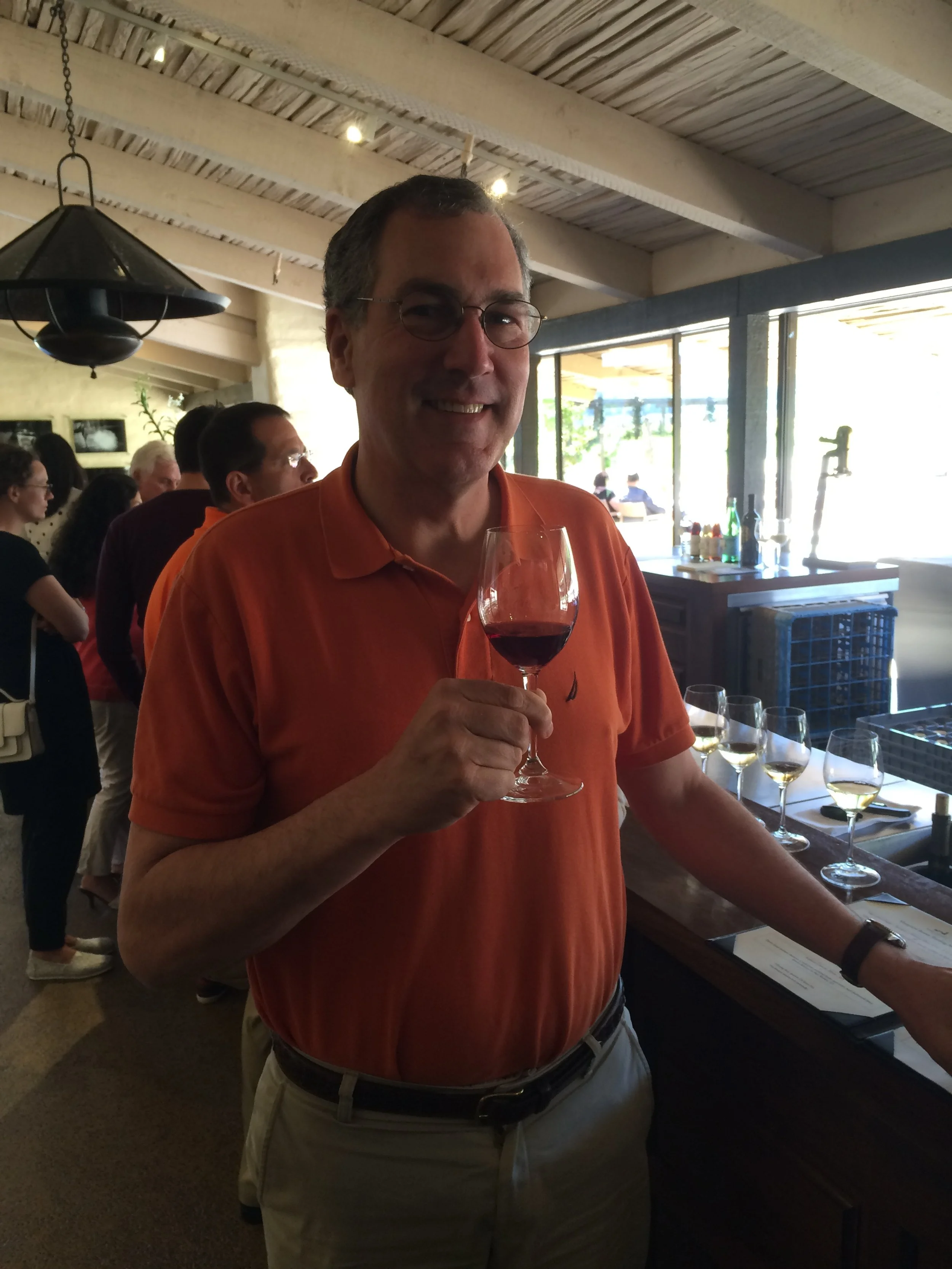 My wife and I were joined by two friends on our Napa tour. On our first full day we took the Napa Valley Wine Train north to Yountville, Oakville, Rutherford, St. Helena, and Calistoga. Along the way we were served dinner in a Pullman dining car. The next day we found breakfast at the Oxbow Public Market in downtown Napa before departing northward by car to the William Hill Winery. Established in 1976, William Hill is on Napa’s east highway. After touring its vineyard and a few buildings where wine is produced and stored, we were offered samples of a delightful sauvignon blanc. William Hill also produces chardonnay, cabernet sauvignon, merlot, and pinot noir. By mid-morning we departed southward to reconnect with Napa’s west road (Highway 29) for stops at Alpha Omega, Beringer, Hall, and Schramsberg wineries. Hall Wines is distinguished by a ten-meter-tall metallic rabbit located on the west side of Highway 29.