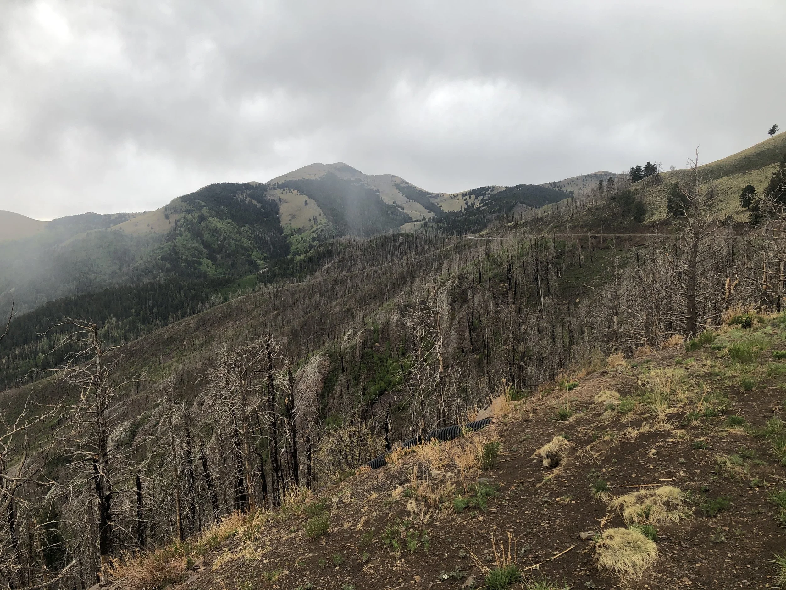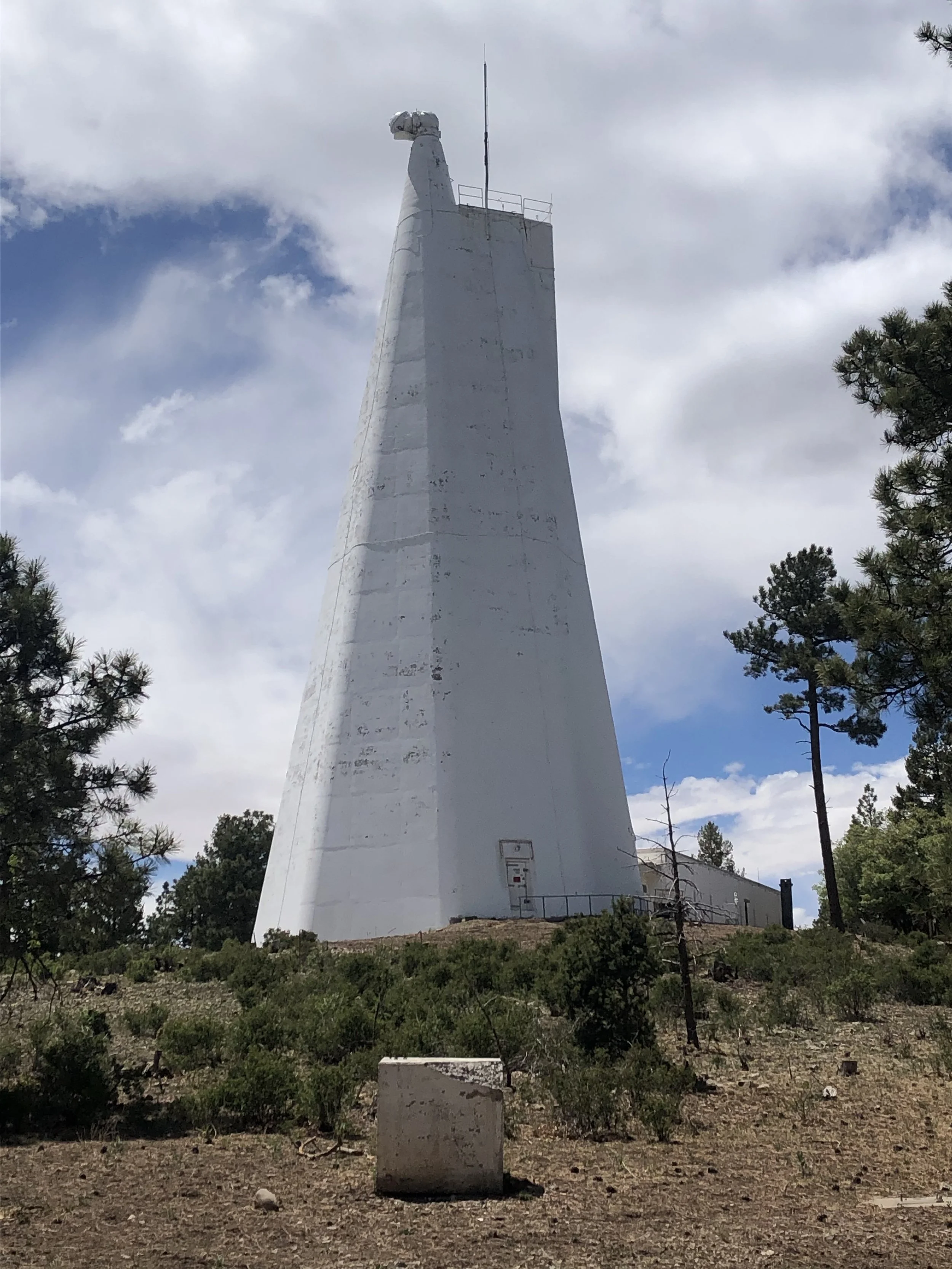 On the afternoon of our second day we explored the nearby Sacramento Mountains, a southern extension of the Rockies. Extending 137 kilometers north/south by 68 kilometers east/west, the mountains form an east-dipping fault block of mostly limestone rock. In terms of management, the Sacramentos are within Lincoln National Forest. High on a ridgeline and twenty-five kilometers south of the town of Cloudcroft is Sunspot Solar Observatory. We followed New Mexico State Road 6563 to 2,800 meters above sea level. Located on a ridgeline, the observatory offers views of the San Andreas Mountains on the far west side of the Tularosa Basin as well as the Organ Mountains, positioned to the south near the city of Las Cruces. The observatory’s equipment includes the world-renowned Dunn Solar Telescope. In 1947, U.S. government scientists became interested in the impact of sunspots and solar flares on radio blackouts. The Dunn is a vertical axis solar telescope designed to capture high resolution images of the sun. Its 41-meter tower sits on an observation platform with more than half of its superstructure located underground. The observatory is operated by New Mexico State University with partial support provided by the U.S. National Science Foundation.