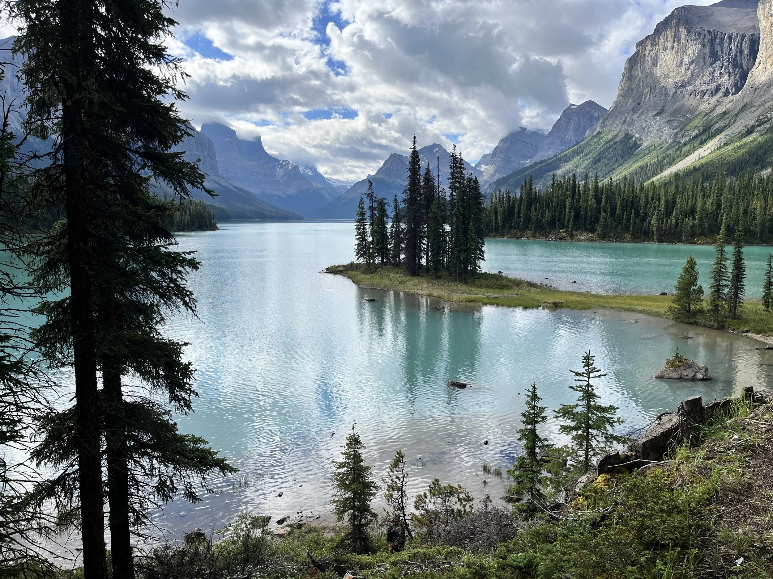 West of Banff is the 10,878 square kilometer Jasper National Park. First designated Jasper Forest Park in 1907, the area became a national park in 1930. The park includes an area within the Brazean and Athabasca River Valleys and sections of Canada’s Front Ranges. Hoping for panoramic views, we took the Jasper Skytrain to the top of Whistler’s Mountain (elevation 2,260 meters). Traveling in a gondola, the journey took eight minutes. We hoped to complete the two-kilometer hike to the summit but had to return to the gondola complex because of high, gusty winds. Eventually, the gondola paused operations too. We bided our time waiting for winds to subside over lunch at the Summit Café. Maligne Lake is a must-see for anyone visiting Jasper. My wife and I booked tickets in advance for a two-hour lake cruise. Fourteen kilometers long, Maligne is the largest natural lake in the Canadian Rockies. With waters tinted azure by glacial flour, it is surrounded by lodgepole pine and spruce. We motored southeast between Samson Peak and the Queen Elizabeth Ranges. Meltwaters from the Coronet Glacier flow into the southeastern corner of the lake. Our boat docked near Spirit Island, aka Chaba Imne (Beaver Lake). The majestic towering mountains that surround the island have been dubbed “Hall of Gods.” Just 1.2 hectares in size, the picturesque island is connected to the mainland by a grassy isthmus. The artist Mary Schäffer was the first European to see Spirit Island in 1907.