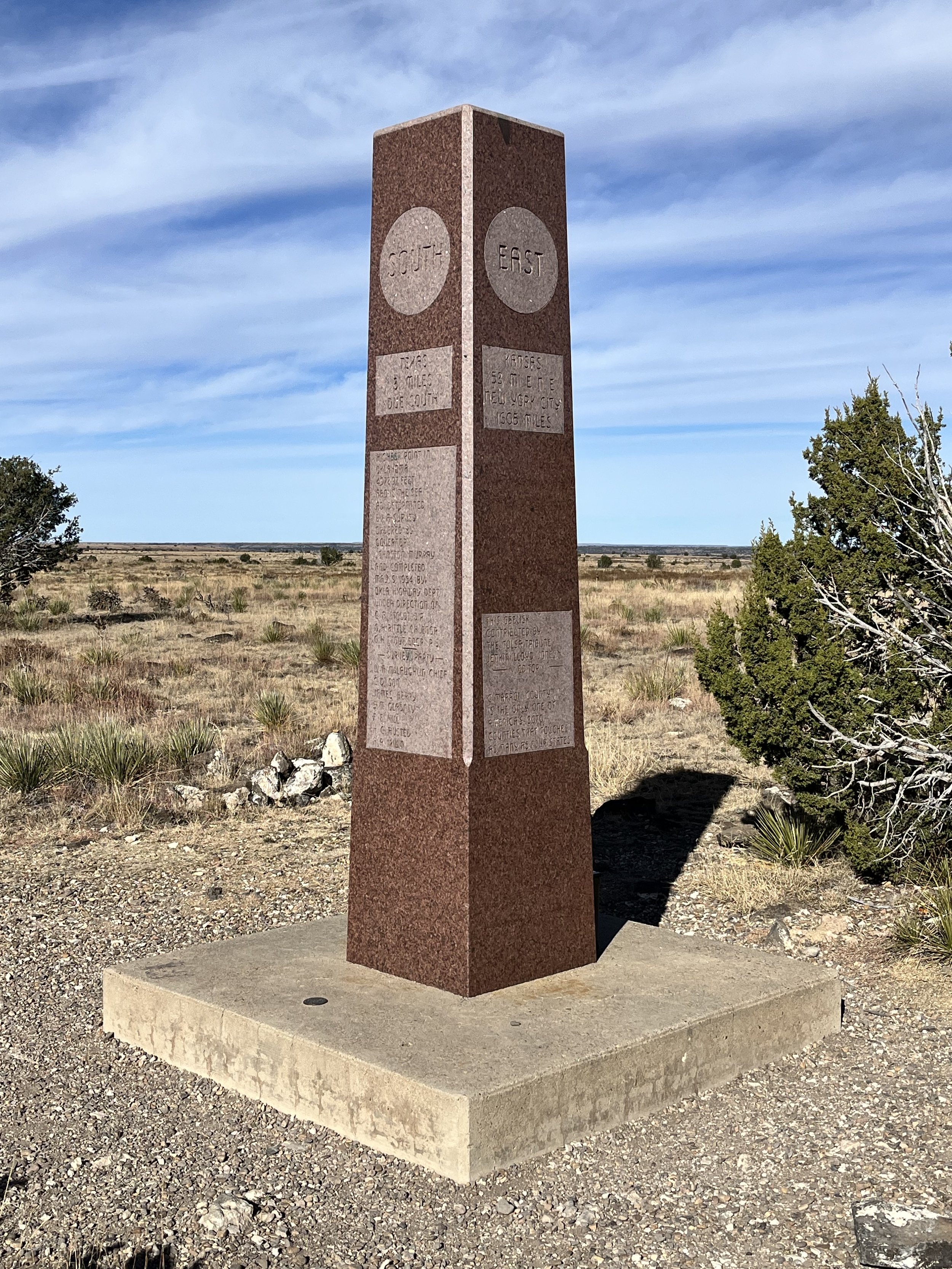We followed the 6.8-kilometer trail that leads to the top of the mesa and a granite monument marking the highest point in Oklahoma. Two-hundred and forty meters above the level of the surrounding plains, the mesa’s edge is a place of solitude and serenity. Looking west we could see Rabbit Ears (1,848m), Sierra Grande Peak (2,657m) and Capulin Mountain (2,494m) in the distance. Because of its location far from a city, the mesa has become popular among astronomers with star gazers who come each September for the Okie-Tex Star Party.