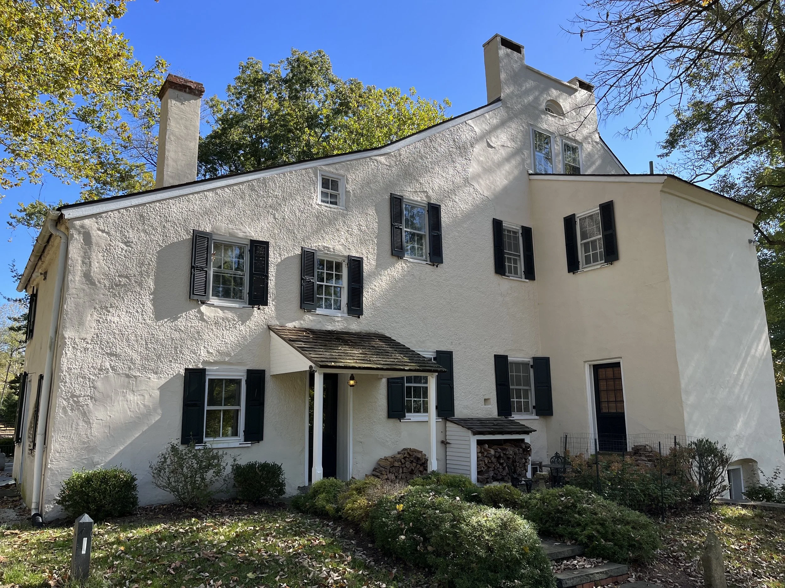 A native of southwest England, Thomas Willcox learned to make paper before he departed England for the American Colonies in 1725. Shortly after arriving in Pennsylvania’s Concord Township, Willcox began a printing partnership with Thomas Brown. Since Willcox brought printing expertise, it was agreed that he would receive three-fifths of the profits with the remainder going to Brown. In 1726 Willcox and Brown built a dam across Chester Creek and soon after began producing pressboard used in the manufacturing of books. The name “Ivy Mills” comes from Willcox’s decision to plant ivy from his native Devonshire that quickly covered the mill building. Devoted Catholics, the Willcox family allowed their house to be used as a mission chapel beginning in 1730. One of Willcox friends and customers was Benjamin Franklin who sourced paper from Ivy Mills for his publications including the Pennsylvania Gazette. When Thomas Willcox passed away in 1772, his son Mark took over the business. Two years later, Mark Willcox constructed a large house on the property.