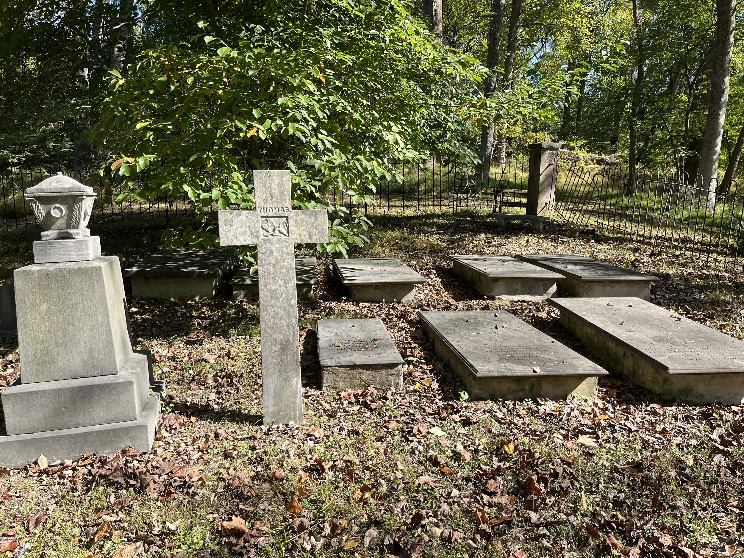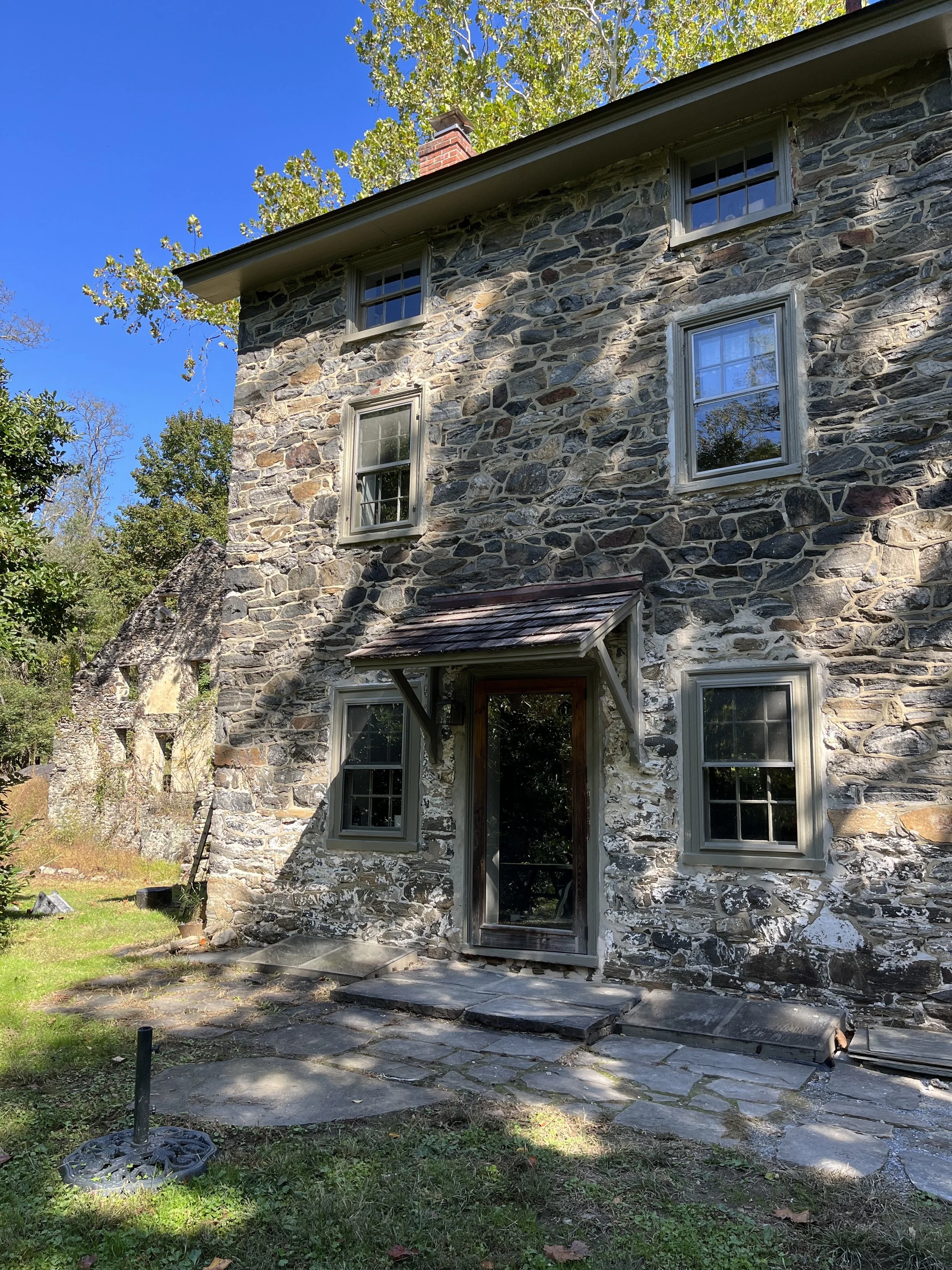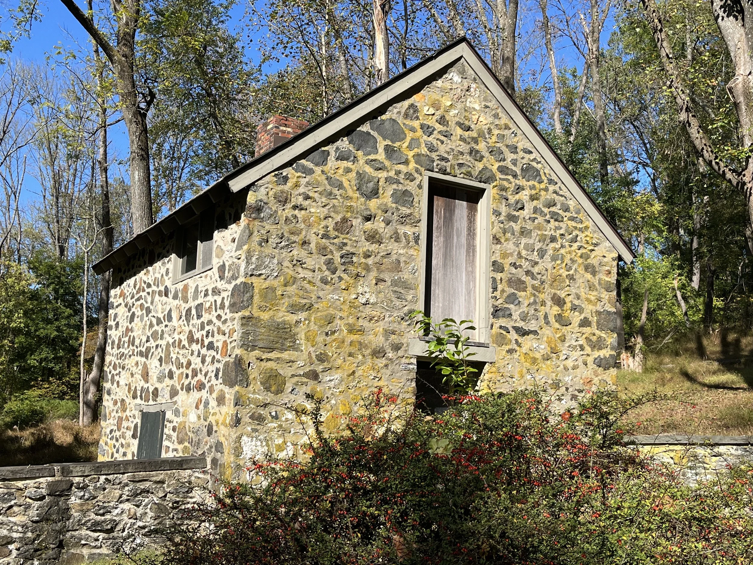 After touring the mansion, we walked through the grounds of the former paper mill. Constructed in 1830, the three-story Clerk’s House is adjacent to the mill ruins. Used for record keeping, the house was recently renovated and is now used as a private residence. Nearby, are foundations and walls of the 2½ story mill building that was constructed in 1829. Before departing we wandered through the Willcox family cemetery.